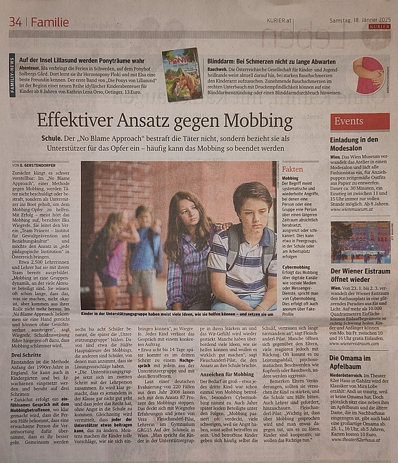 Im Oktober 2025 veröffentlicht die Kinder- und Jugendanwaltschaft Wien einen aktualisierten Ratgeber und ein Plakat zu Mobbing. Jeweils ein Exemplar ging an jede Schule Wiens. Als Expert:innen waren wir eingeladen daran mitzuarbeiten und freuen uns sehr über das Vertrauen und die Anerkennung durch die Bildungsdirektion sowie der betreffenden Partnerorganisationen.